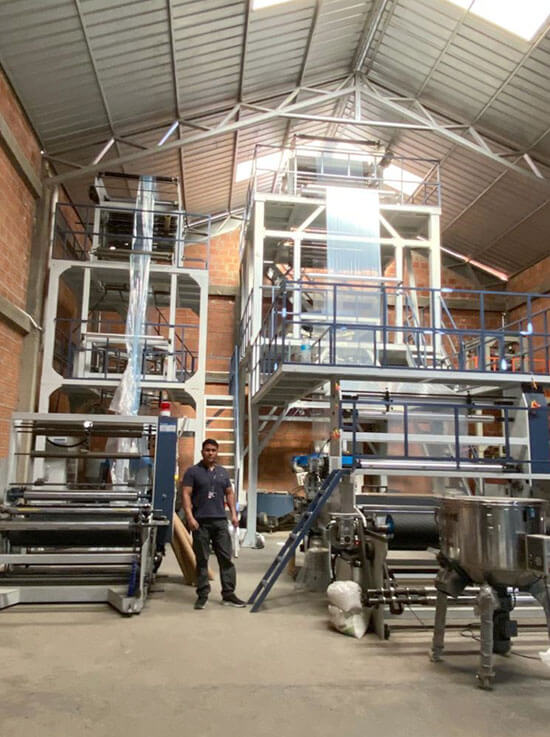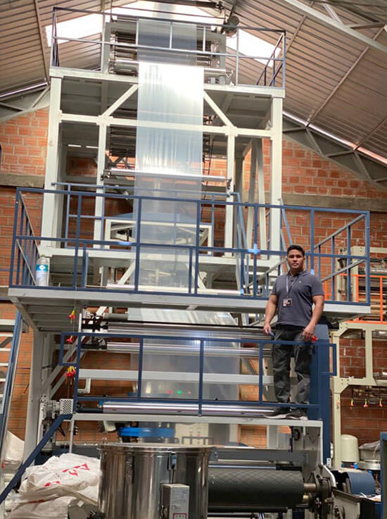 玻利維亞拉巴茲當(dāng)?shù)匾患倚⌒鸵?guī)模吹膜廠,從我們PLASTAR公司購(gòu)買(mǎi)過(guò)2臺(tái)吹膜機(jī),一臺(tái)單層1000mm吹膜機(jī),另一臺(tái)為單層1500mm吹膜機(jī)。客戶(hù)沒(méi)要求我們派遣工程師,全部都由客戶(hù)自行組裝,并且試機(jī)驗(yàn)收。目前機(jī)器運(yùn)轉(zhuǎn)良好,客戶(hù)主要做大型食品袋子和貨物袋子。