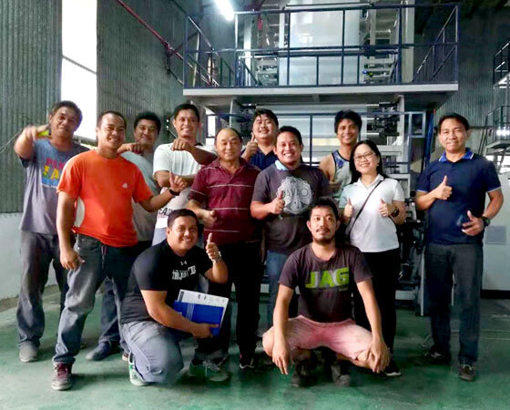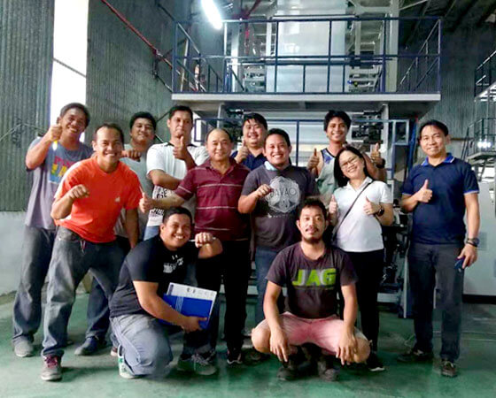 2018年,菲律賓客戶訪廠并建立信任合作,首次購(gòu)買6臺(tái)吹膜機(jī)(ABC,ABA,AB, twin die等),主要生產(chǎn)香蕉袋子等。如今機(jī)器在客戶工廠運(yùn)轉(zhuǎn)情況良好,使客戶在當(dāng)?shù)厥袌?chǎng)競(jìng)爭(zhēng)占了一席之地。